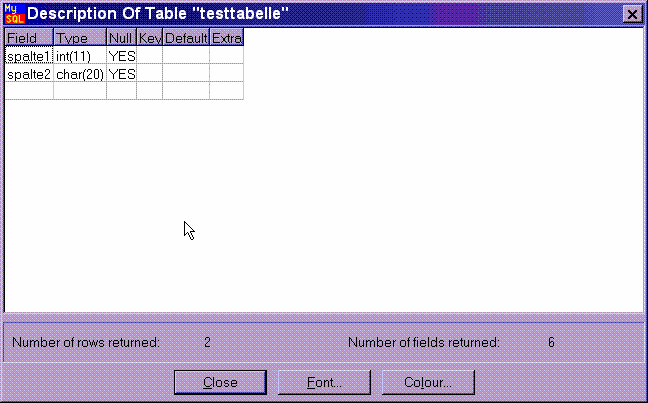 mysql> insert into testtabelle (spalte1, spalte2) values(5,"testwert");